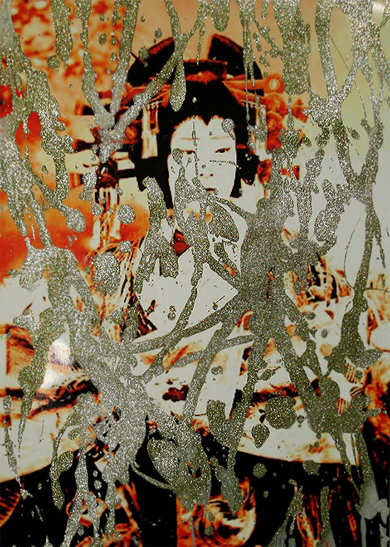 DAIGORO TACHIBANA AS OIRAN samurai series 2014 Acrylic, clear medium & glitter on sticker print mounted on 400g paper 110 x 70 cm