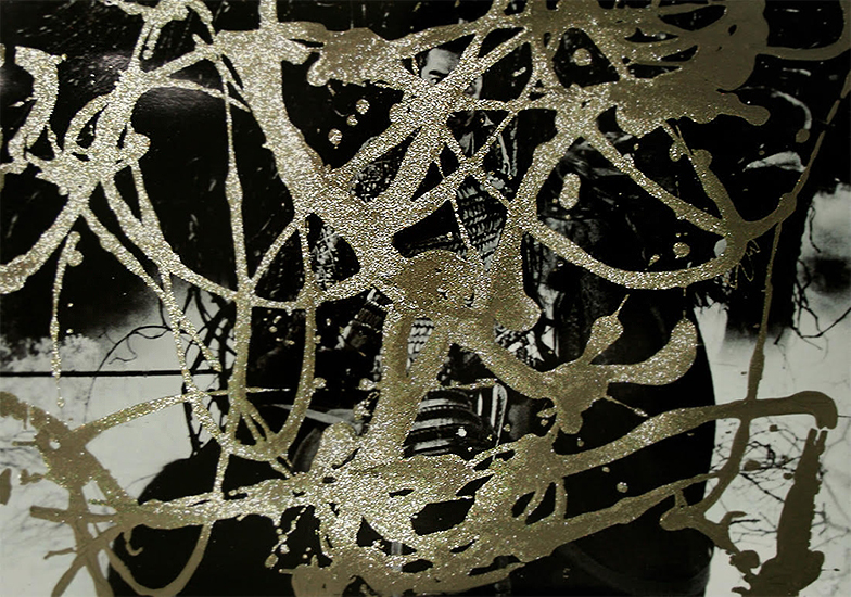 TOSHIRO MIFUNE ON HORSEBACK samurai series 2014 Acrylic, clear medium & glitter on sticker print mounted on 400g paper 70 x 110 cm